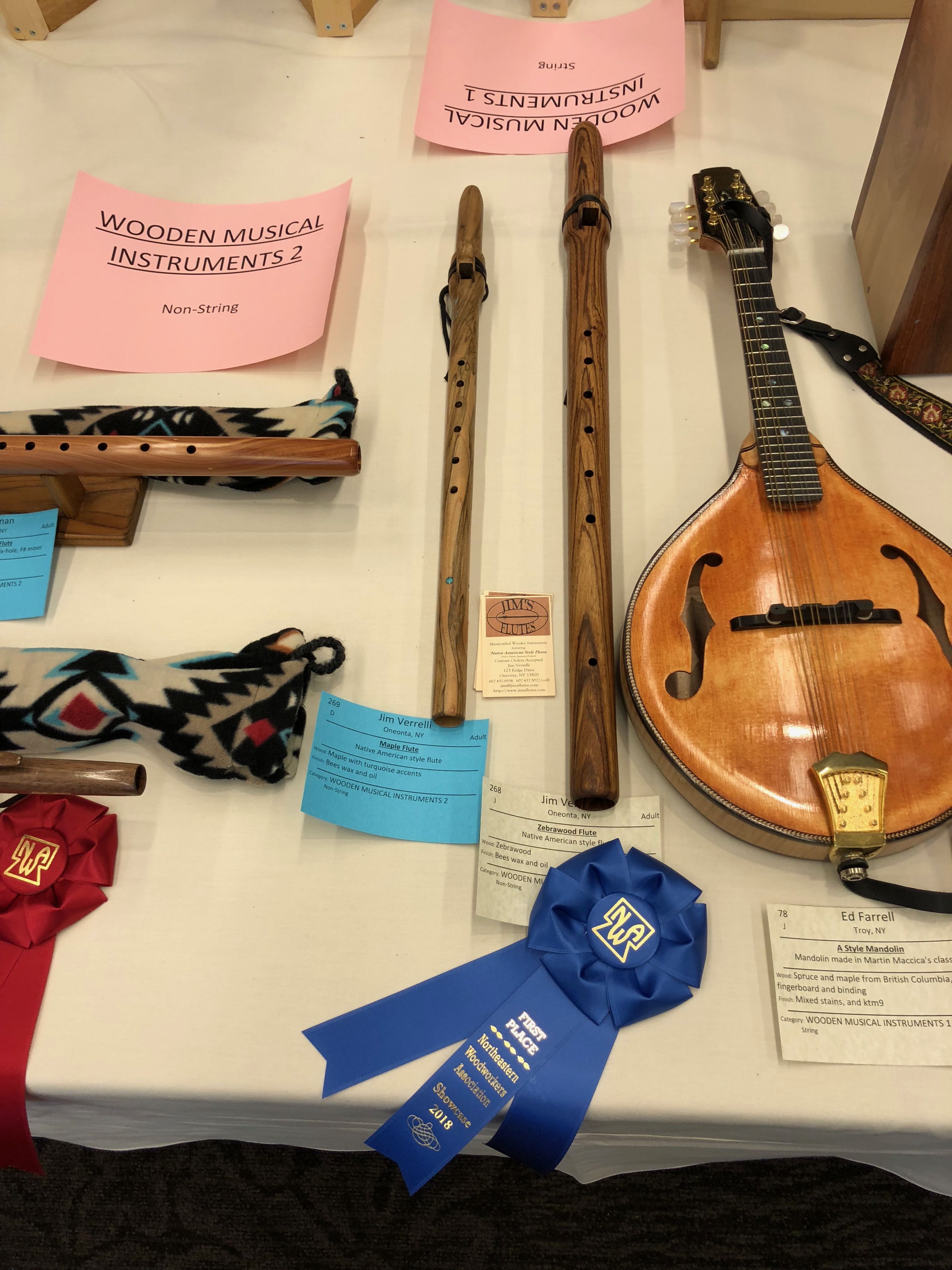 2nd year attending the showcase. This year I entered a 1 1/2" Bore Maple Flute in the Musical Instruments cagegory and received a 3rd place ribbon. First and second places when to some very beautiful guitars.