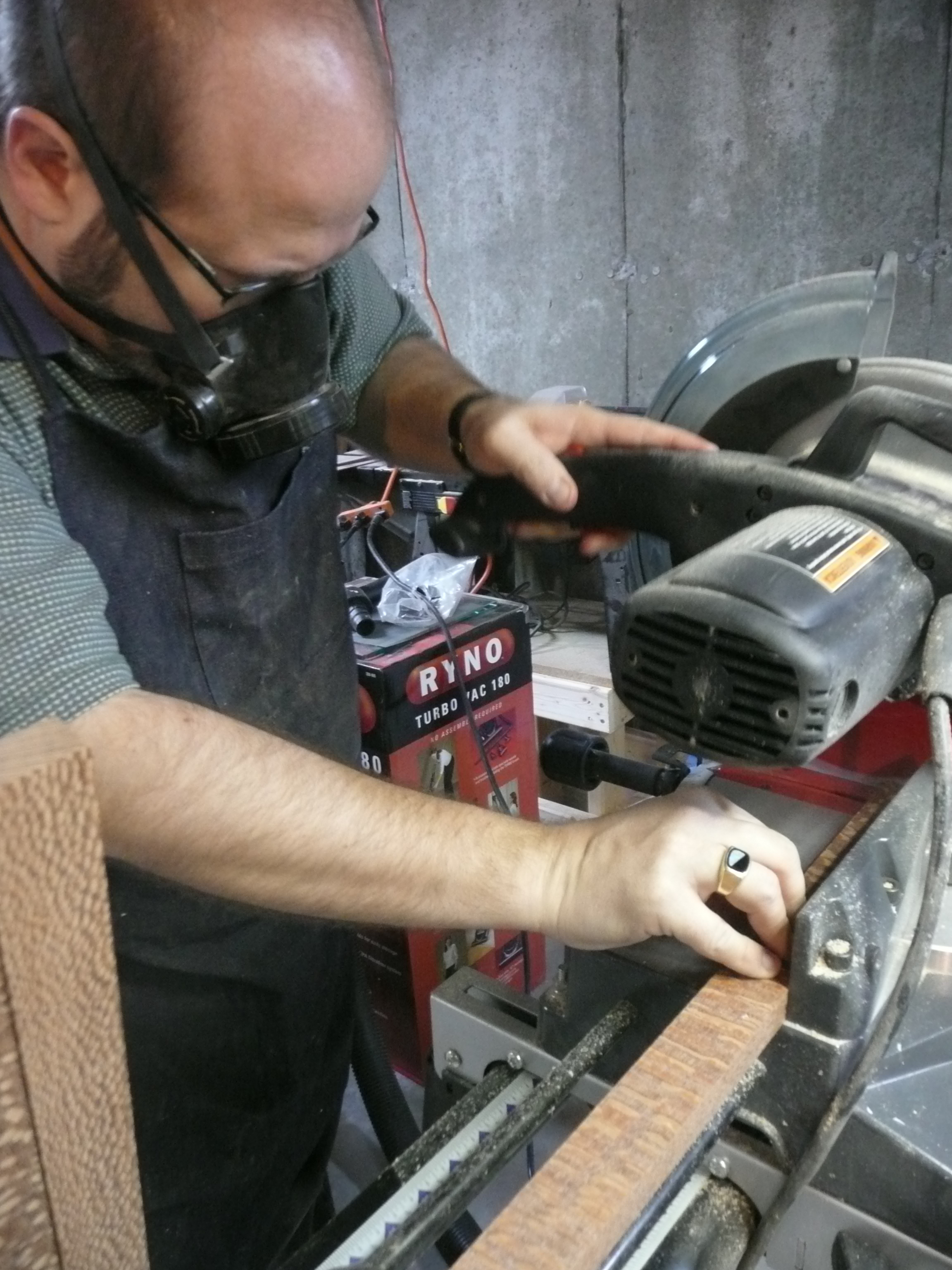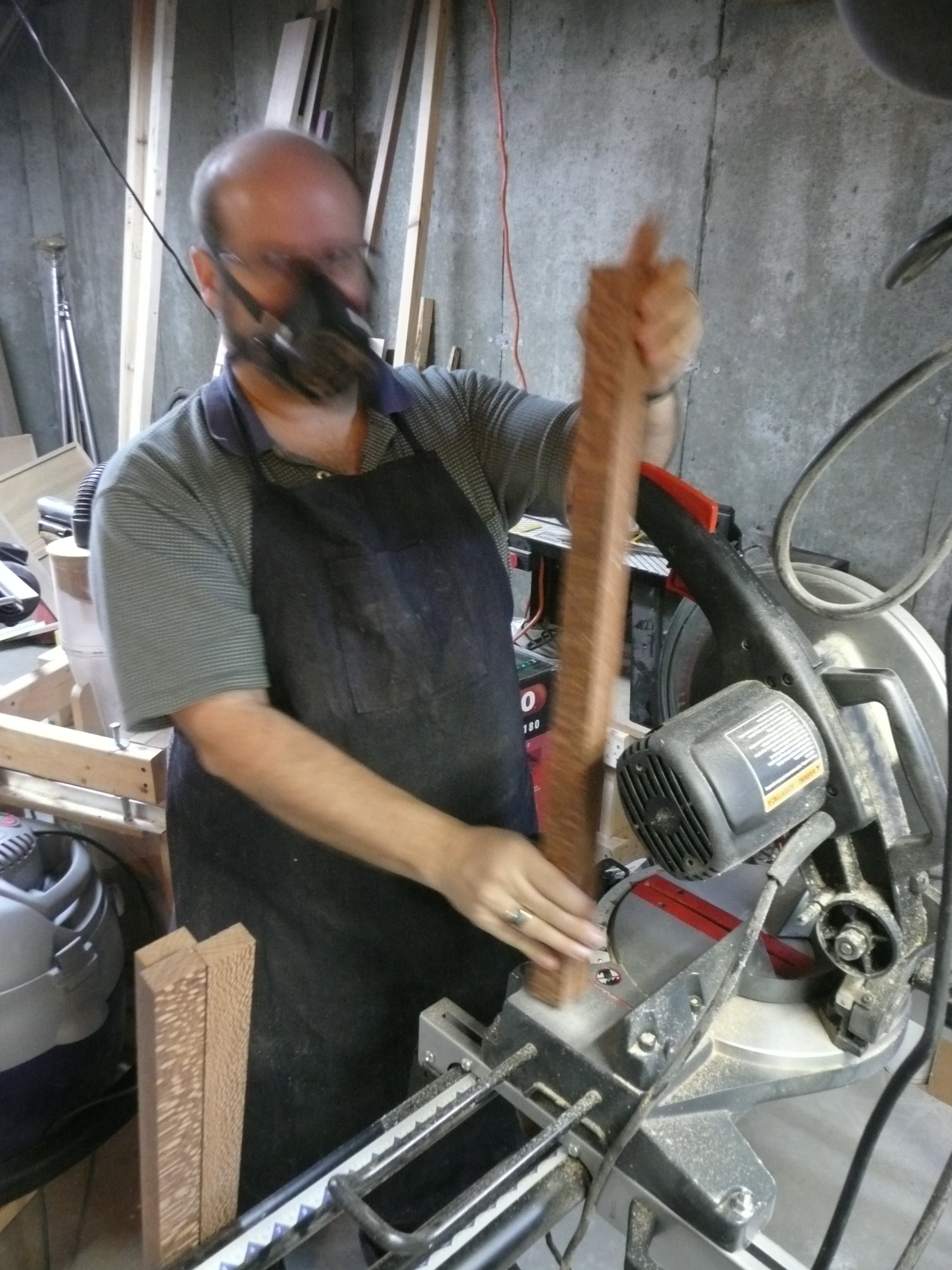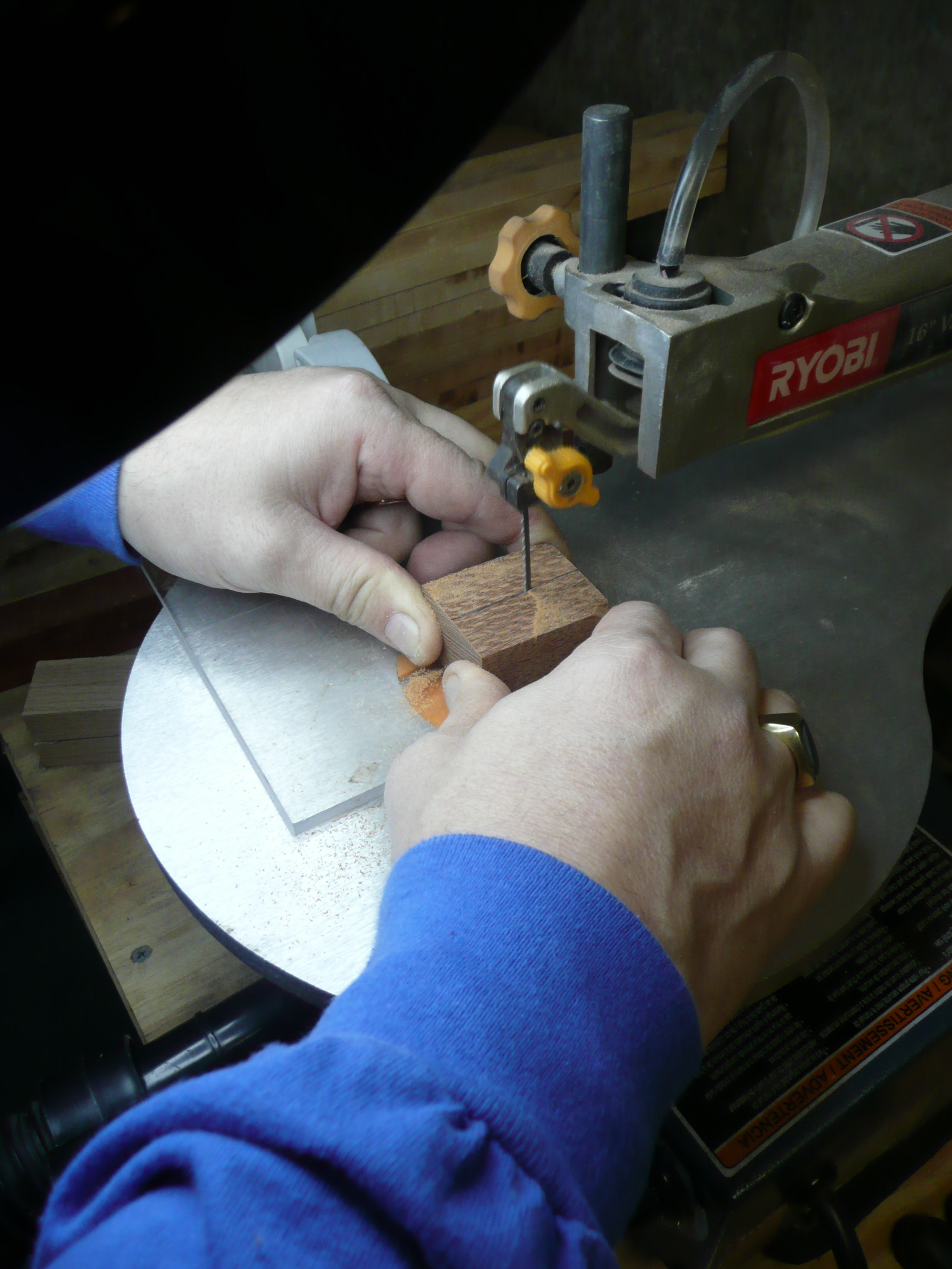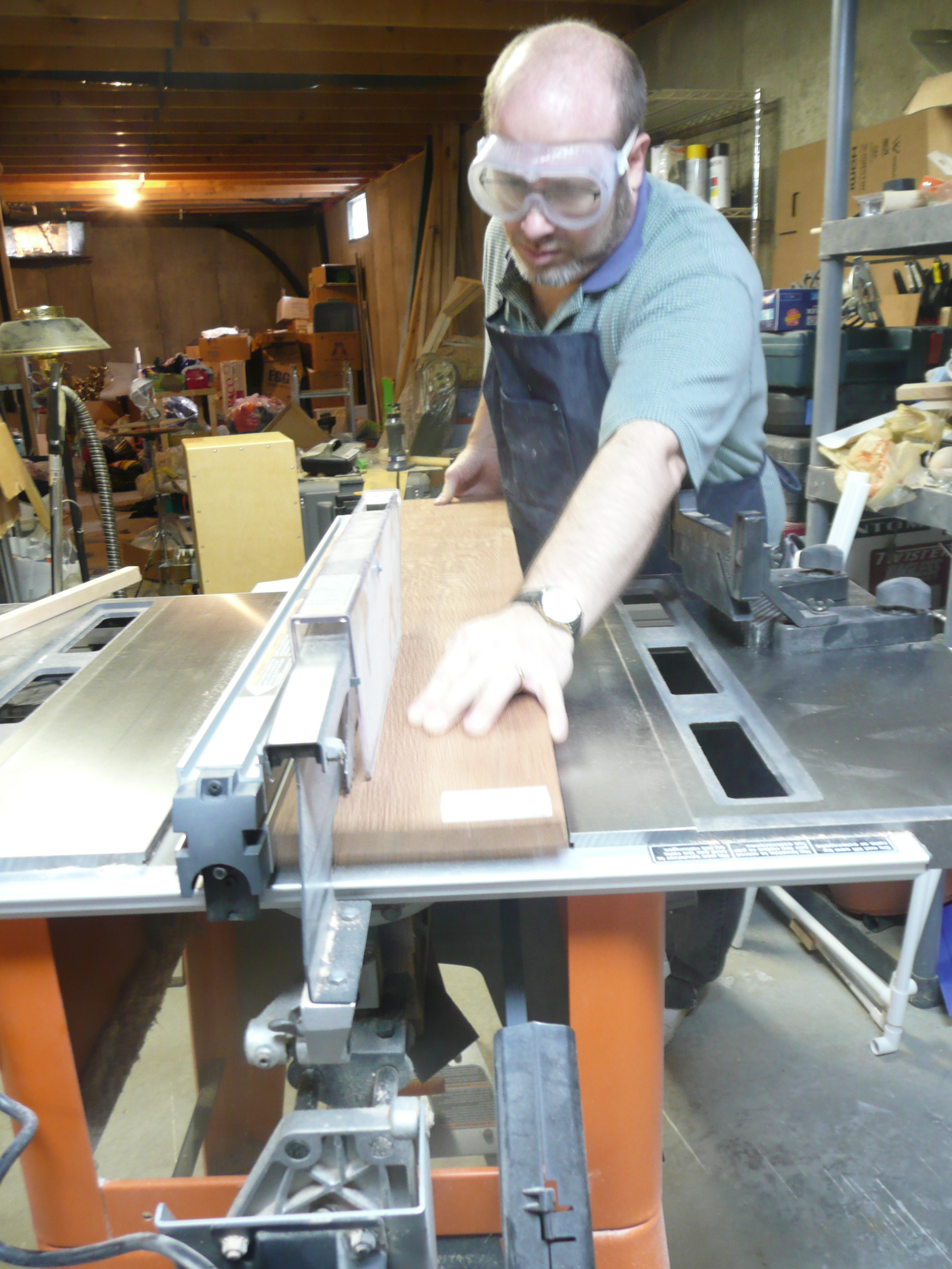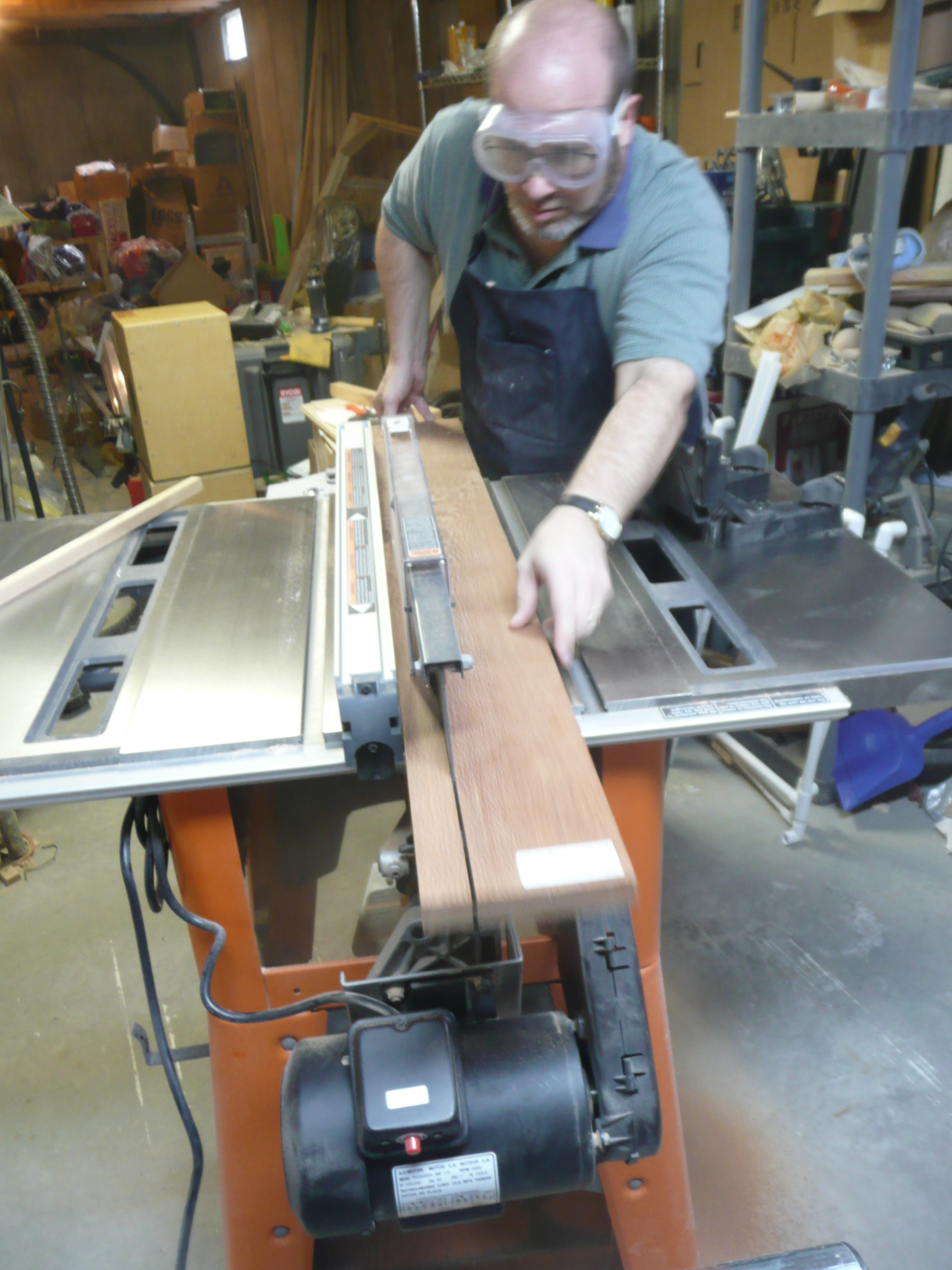 Most of the time I start with stock boards, 1 inch in this case. These pictures were taken before I acquired my band saw, so I used my table saw to cut the blanks to size. First they are cut to the correct width and then they are rotated 90 degrees and cut to the proper thickness. These steps are now done with my band saw. Next they are cut to to length.