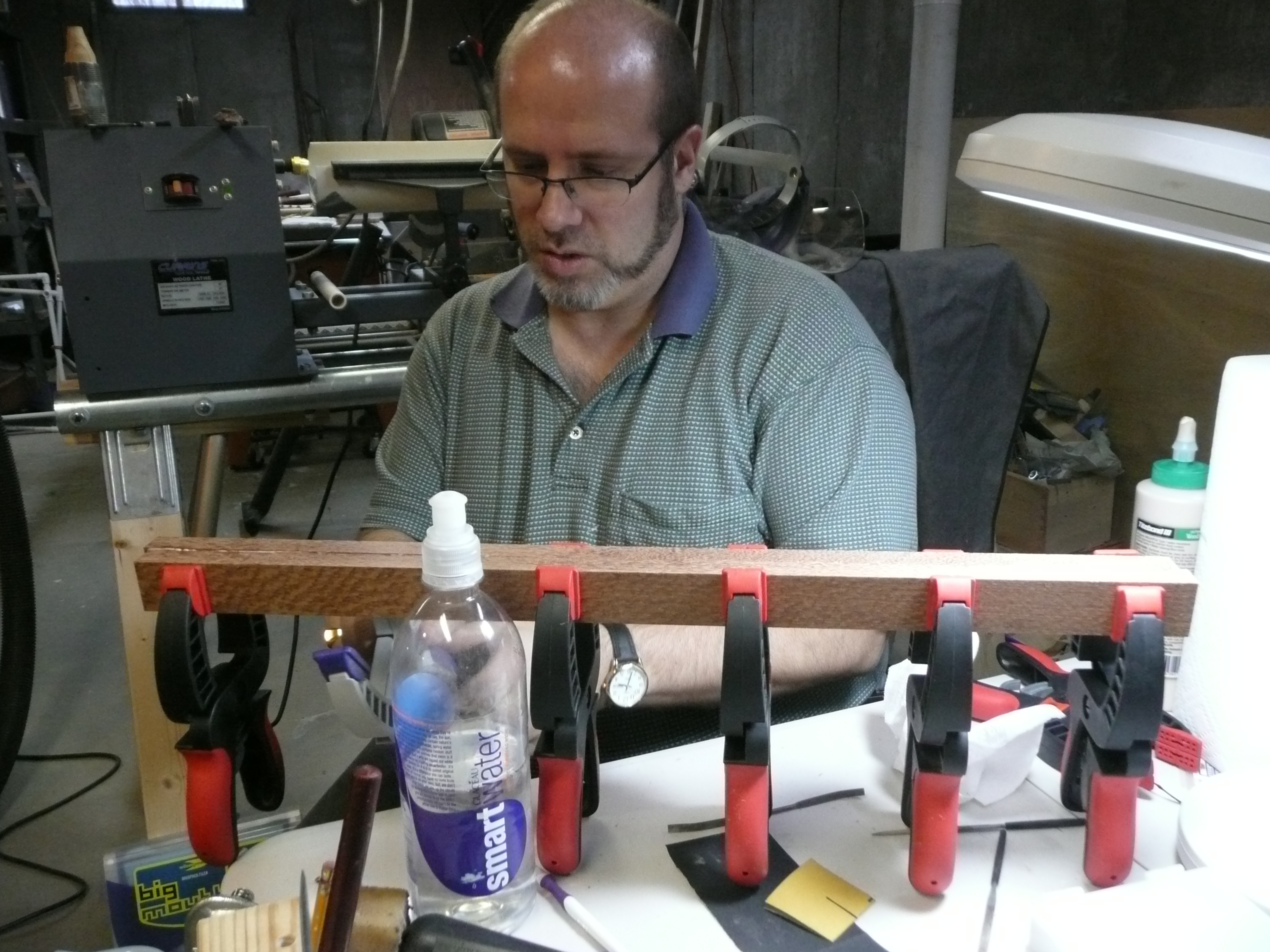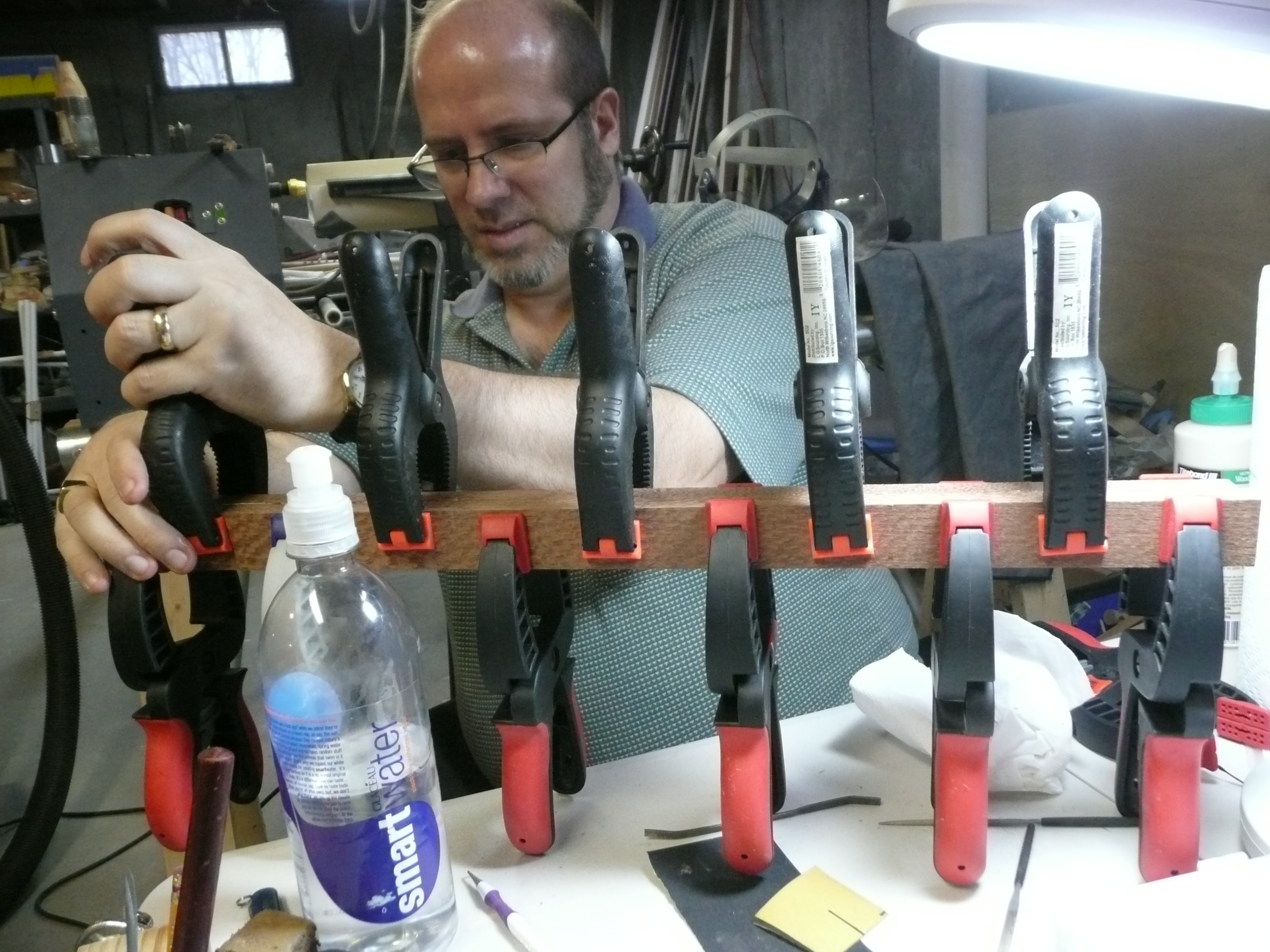 Once I am satisfied with the SAC Exit and TSH, it's time to glue the blanks together. I use Tightbond III glue because it is strong, waterproof, non-toxic and has good working time before it dries. I use quite a few clamps to get a nice tight seam.