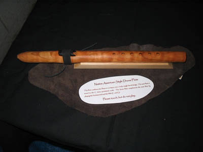 October, 2008 Wightmans Specialty Woods Woodworking Competition, First Place Miscellaneous Category for a uniquely designed Curly Cherry drone flute (Both the main flute and the drone are in the same barrel separated by a thin piece of wood that extends the length of the flute).